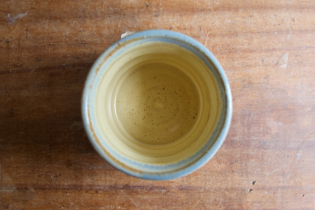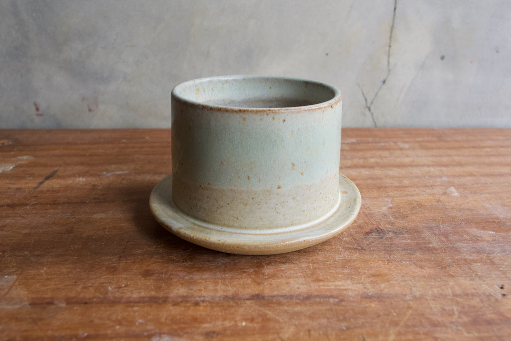 Seafoam and white wide base pot - Diameter at rim 7cm, at base 9cm. Height 5.5cm