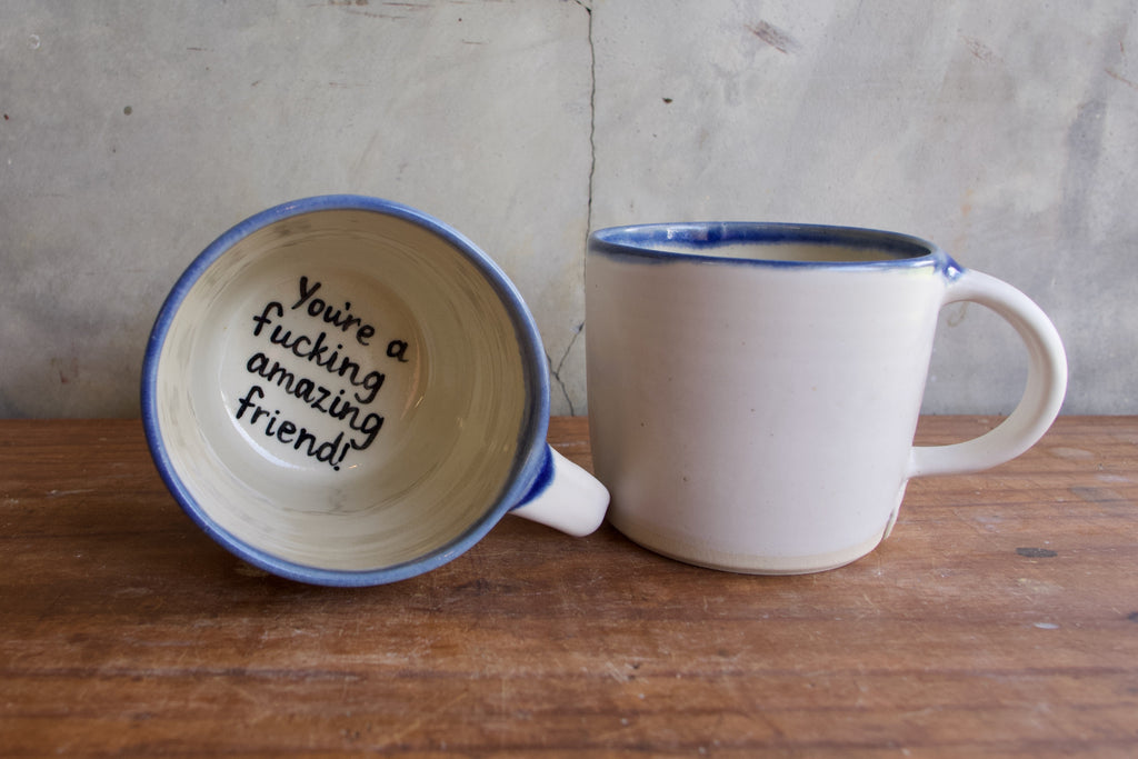 The perfect way to give someone a cheeky message at the bottom of their tea. Great as a gift, or to be given to a friend full of tea, so the message is revealed as they finish and a heartwarming and perhaps sweary compliment is given.